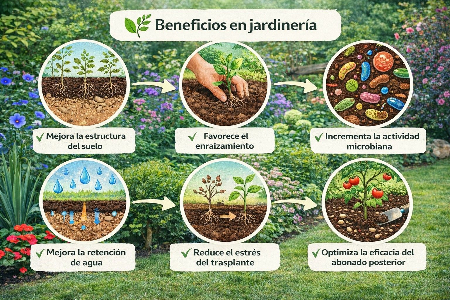 • Aplicación: Mezclar con la tierra antes de plantar o incorporar ligeramente en superficie tras la plantación.